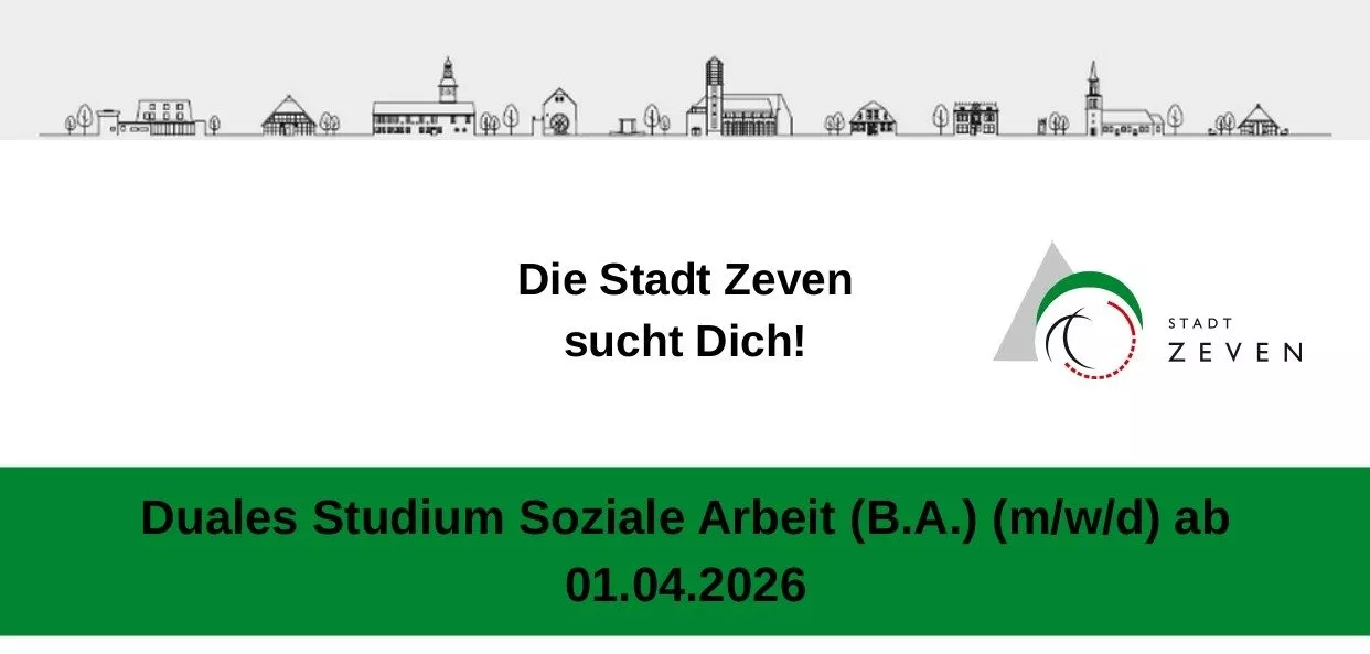 Die Stadt Zeven bietet einen Auszubildungsplatz für das duale Studium Soziale Arbeit ab 1.04.2025. Dieser Studiengang erfolgt in Kooperation mit der IU Internationale Hochschule Bremen. Die akademische Ausbildung wird an der Hochschule in Bremen stattfinden, und der praktische Teil bei uns im Kinder- und Jugendhaus. Ein attraktives Ausbildungsangebot für jemanden, der sich für eine humanistisch professionelle Arbeit mit Menschen berufen fühlt.